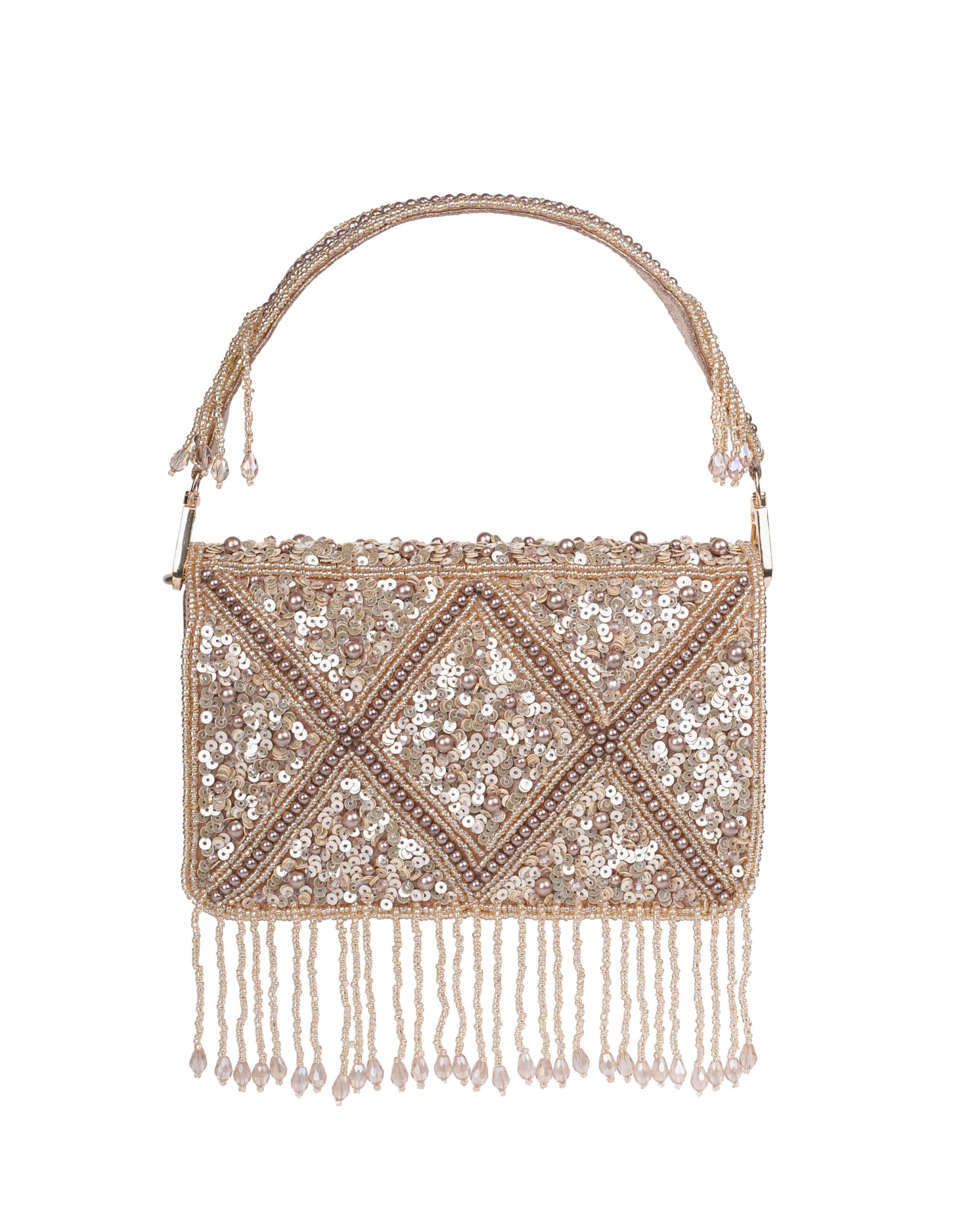 STYLE : Vintage-inspired with diamond-shaped bead embroidery / Sequins, pearls & tassel embellishments / Shimmery textured look that sways gracefully with movement / Ideal for weddings, parties, and festive occasions.